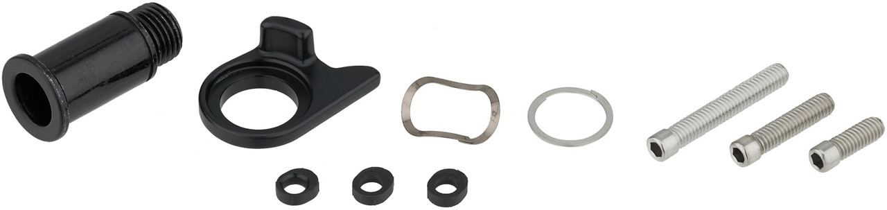 Lieferumfang:1 x Schaltwerkschraube1 x B-Einstellscheibe1 x Sicherungsring 12 mm1 x Wellfederscheibe 12,75 mm1 x B-Einstellschraube2 x Begrenzungsschraube3 x Unterlegscheibe